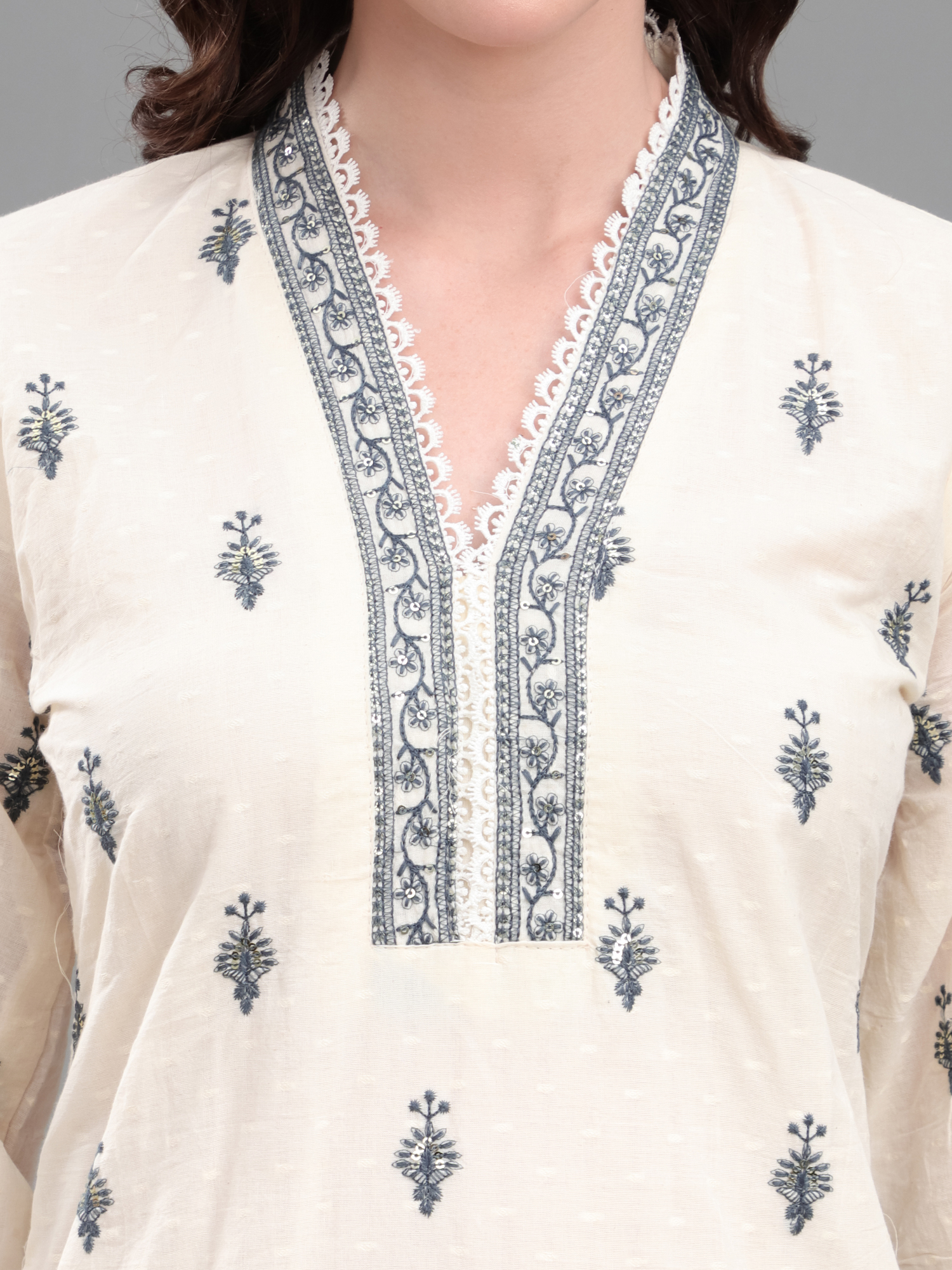 • Dry clean recommended to preserve the quality of embroidery and delicate fabric